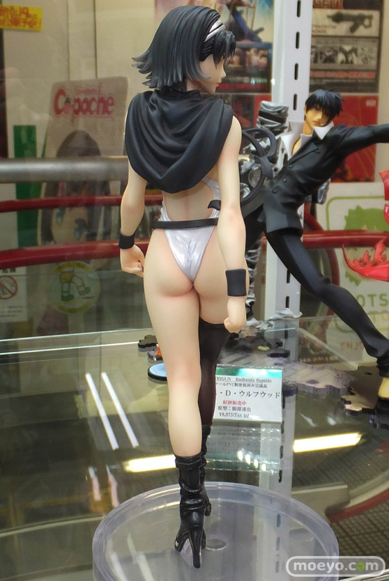 コトブキヤ「TEKKEN美少女 鉄拳タッグトーナメント2 風間準」のPVC彩色サンプルが、コトブキヤ秋葉原館4Fで展示中です。『特徴的な「カラス」をあしらったモノトーンの衣装は、山下しゅんや氏により過激にアレンジ!』というもので、超切れ込みのレオタード風となっています。そのVゾーンの切れ込みやお尻の食い込み加減なども「過激なアレンジ」に忠実で、かなりすごいことになっていますよ!