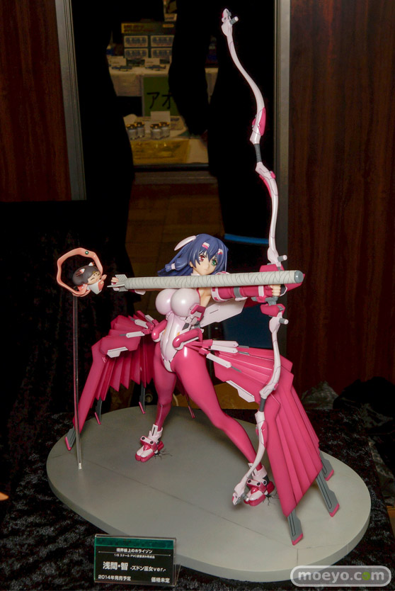 「宮沢模型 第32回 商売繁盛セール」の会場で、本日(12月19日)より予約が開始した、コトブキヤ「境界線上のホライゾン 浅間・智 ズドン巫女ver.」の彩色サンプルが展示!『原作の川上稔氏、イラストレーターさとやす氏の徹底監修により、作中の姿を完全再現』というもので、製品版では原作の川上稔氏のアイデアをもとにパーツの差し替えにより、『梅椿』を「つがえた状態」と、放った後の「残身状態」を再現できるそうです。