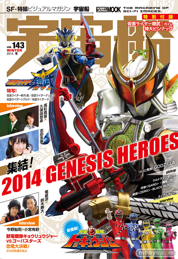 最新号となる143号は放送開始直後から注目を集める『仮面ライダー鎧武/ガイム』と、クライマックスに向けてますます盛り上がりをみせる『獣電戦隊キョウリュウジャー』の2大ヒーローを巻頭特集としてフィーチャー。
