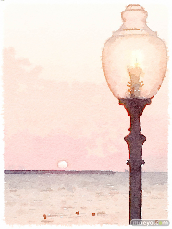 美しい夕日と街灯が、良い感じでとれたと思います。