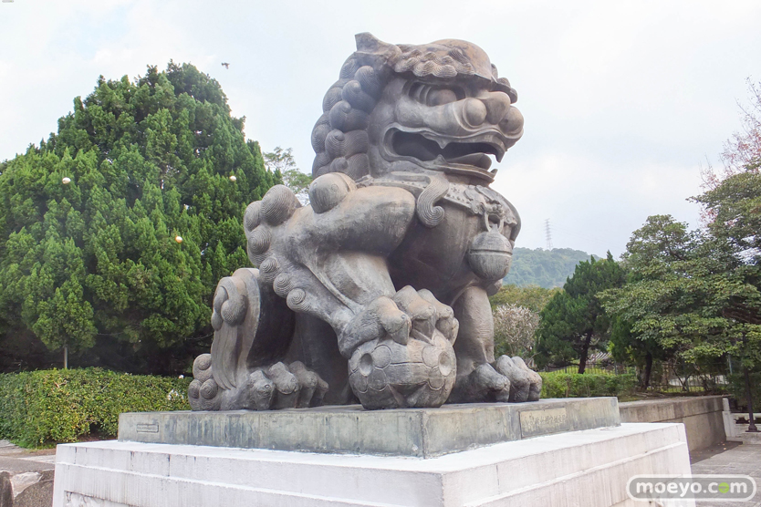 博物院前の狛犬。左のボールをつかんでいるのはオスで、右の子供とじゃれているのがメス。