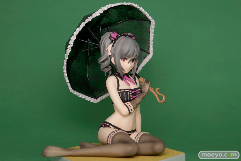 ウェーブ「BEACH QUEENS アイドルマスター シンデレラガールズ 神崎蘭子」のサンプルレビューです。『「水着パラダイス」で登場した漆黒の衣(水着)姿で、「わ、煩わしい…太陽…(暑い…)」と初めての海でお仕事を頑張る蘭子を、生命の雫(汗)をかきながらも健気に愛らしくフィギュア化』というもので、我を守護せし漆黒の境界(日陰)を生み出す、「ゴシックな日傘」が付属します。