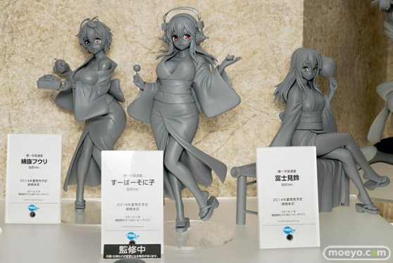 本日2月9日に開催された「ワンダーフェスティバル 2014[冬]」の会場では、記録的な雪に見舞われたにもかかわらず、各メーカーが新作の美少女フィギュアを多数展示していました!この記事では速報として、GSC・MF合同ブース『WONDERFUL HOBBY LIFE FOR YOU!! 19』にて展示されていた新作の中から69組と、告知パネルPOPなどを速報としてお伝えします!画像はフリーイングの「IS シャルロット プードルVer.」。