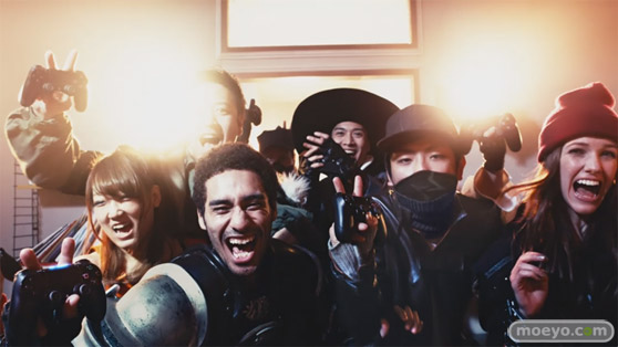 ゲームのキャラクターに扮したプレイヤーたちが、「プレイステーション 4」に没入し、「コントローラーひとつで世界中のプレイヤー同士の体験を共有できる」という本機の特長(“SHARE”機能)を直感的に感じていただくことができます。