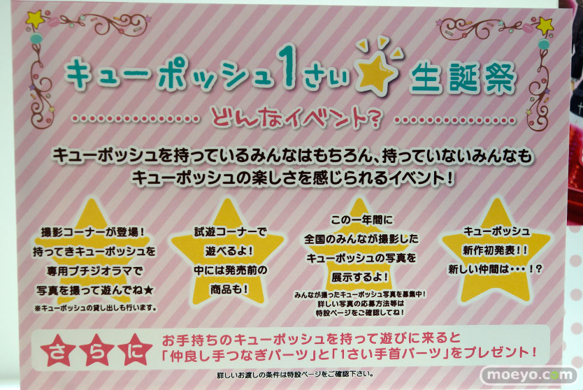 ワンフェスでも告知のあった2014年5月3日(土・祝)開催予定の「キューポッシュ1さい☆生誕祭」の告知も展開。
