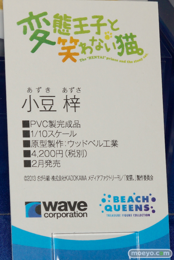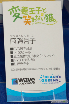 本日(2月14日)に開催された「2014冬ホビーメーカー合同商品展示会」のウェーブブースでは、画像の「桐ケ谷直葉」や、「にゃんぱすー」で有名?な「宮内れんげ」、「纏流子」「西住まほ」など、ウェーブの看板フィギュアブランド「BEACH QUEENS(ビーチクイーンズ)」の新作サンプルが、撮影禁止だった2体を含めると、合計32体(!?)も展示されていました!それら最新フィギュアサンプルの様子を特集でお伝えします!