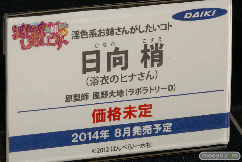 2月14日に開催された「2014冬ホビーメーカー合同商品展示会」のダイキ工業ブースにて、ワンフェスでも展示のあった新作「淫色系お姉さんがしたいこコト 日向梢(浴衣のヒナさん)」の彩色サンプルが展示。気乱れた浴衣越しに見える乳首や透けた質感のパンツが、和のエロスという感じの作品です。そのほか、展示されていた新作サンプルの様子を特集でお伝えします!
