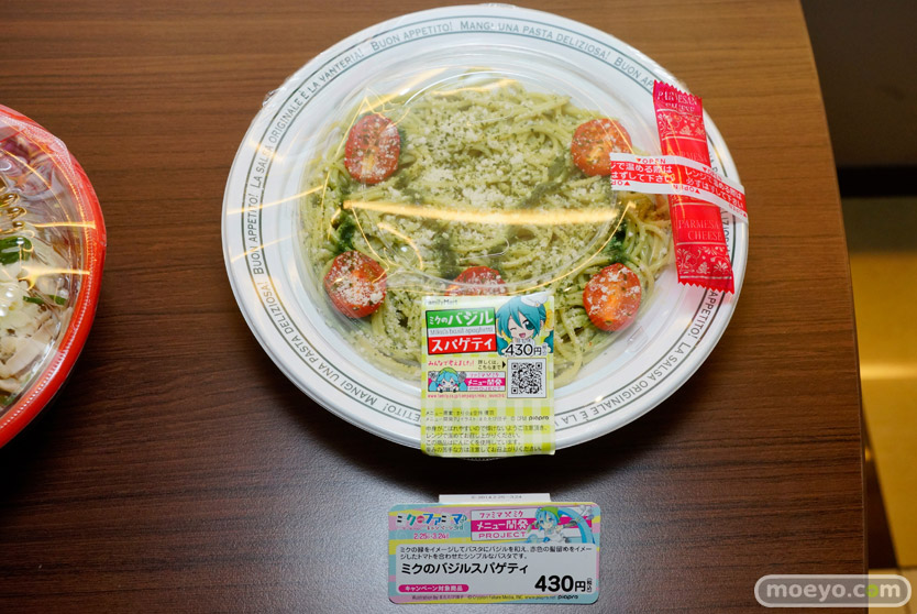 2013年10月から、クリプトン・フユーチヤー・メディア株式会社が運営するコンテンツ投稿サイト「ピアプロ」において、初音ミクコラボメニューのアイデア募集が行われました。約200件のアイデアの中から選ばれた、初音ミクのグリーンをイメージした「ミクのバジルスパゲテイ」(税込価格:430円)や、同じく髪飾りをイメージした「ミクの髪飾り風ケーキ」(税込価格:130円)など5種類のメニューを、2月25日(火)から全国のファミリーマートで発売いたします。