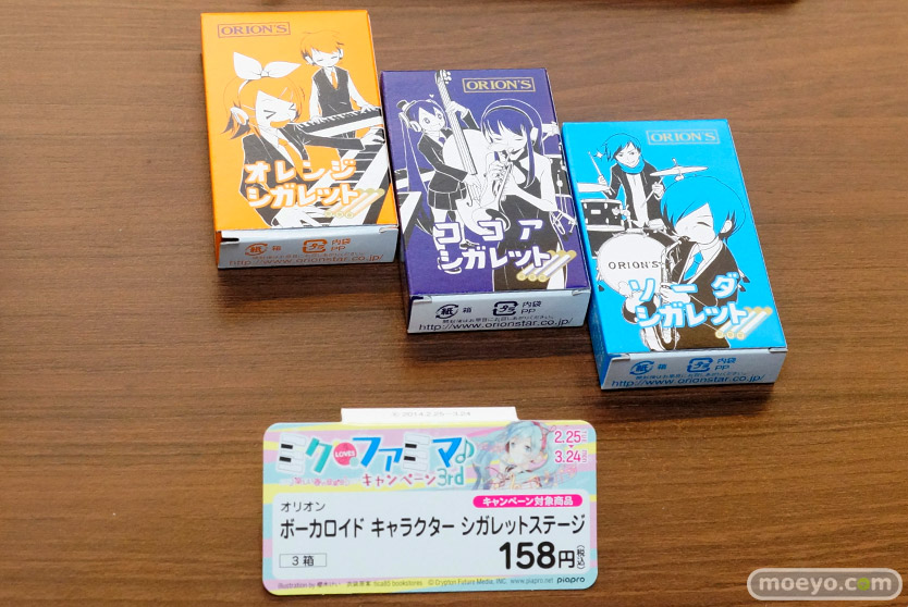 【内容】ロングセラーの駄菓子シガレットと、人気クリエイター「ココアシガレットP(GYARI)」とのコラボレーション商品です。ココア、ソーダ、オレンジの3種類のシガレットが入っています。パッケージには楽器を演奏する初音ミクたちのイラストがデザインされています。裏面のQRコードにアクセスするとオリジナル壁紙&楽曲がダウンロードできる特典付きです。数量限定。