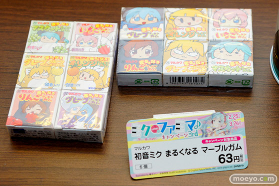 【内容】ロングセラーの駄菓子、マルカワマーブルガムと人気クリエイター「キセノンP」の楽曲「まるくなる」とのコラボレーション商品です。まんまる姿が可愛いミクはイラストレーターねこむら氏の描きおろしイラスト。味は、マスカット、いちご、グレープ、オレンジ、グレープフルーツ、りんごの6個パック。数量限定。