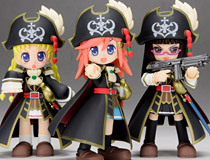 ■ 商品名:「まめしき モーレツ宇宙海賊 加藤茉莉香/チアキ・クリハラ/グリューエル・セレニティ」 ■ 企画・制作:リキッドストーン ■ 仕様:PVC&ABS製 塗装済み可動フィギュア ■ サイズ:ノンスケール 全高約100mm ■ 原型制作:風翔 (リキッドストーン) ■ 価格:税込各5,184円 ■ 発売:2014年7月 |
