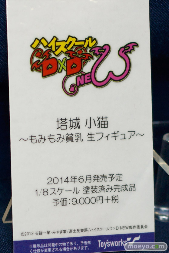 2月14日に開催された「2014冬ホビーメーカー合同商品展示会」の会場で、トイズワークスの新作フィギュア「ハイスクールD×D NEW 塔城小猫~もみもみ貧乳 生フィギュア~」の無彩色サンプルが展示!パンツが見えるのもお構いなしに、棒状のものを足で挟んでいる姿で立体化!どう見ても足○キです。本当にありがとうございました。そんなサンプル展示の様子を特集でお伝えします!