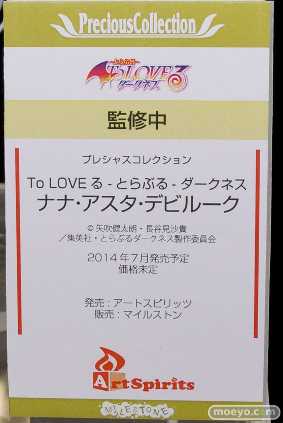 アートスピリッツ プレシャスコレクション ToLoveる -とらぶる- ダークネス ナナ・アスタ・デビルーク アートスピリッツの新作フィギュア「プレシャスコレクション ToLoveる -とらぶる- ダークネス ナナ・アスタ・デビルーク」の無彩色サンプルが、4月8日に開催された「宮沢模型 第33回 商売繁盛セール」の会場で公開!2014年6月発売予定の、制服はキャストオフが可能で、下着姿も可能なモモと対になるようなポーズとなっています。そんなサンプル展示の様子を特集でお伝えします!