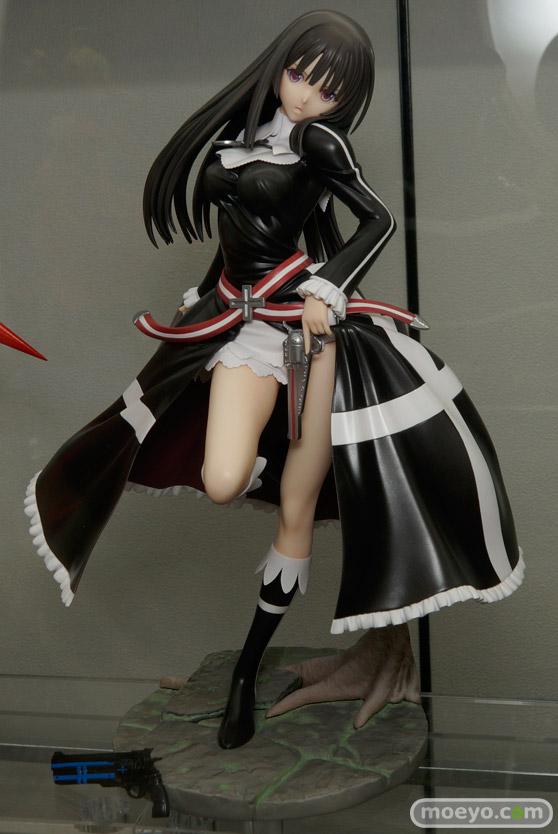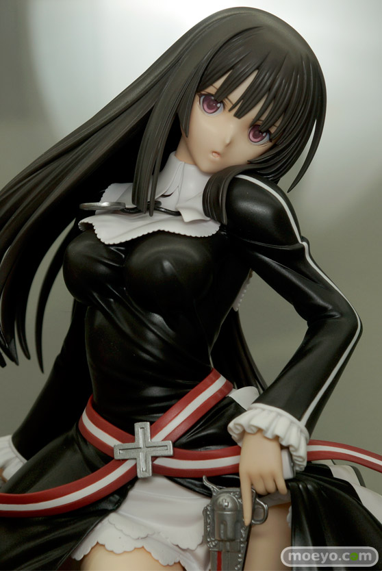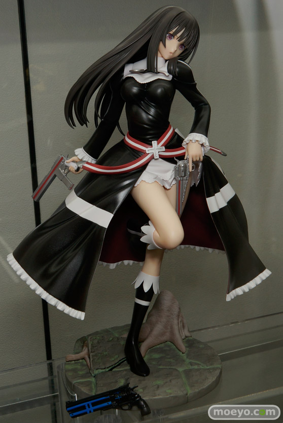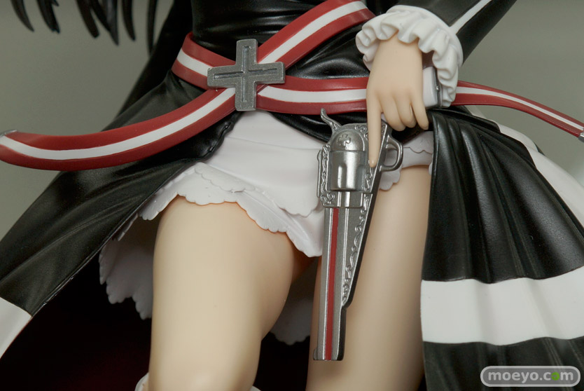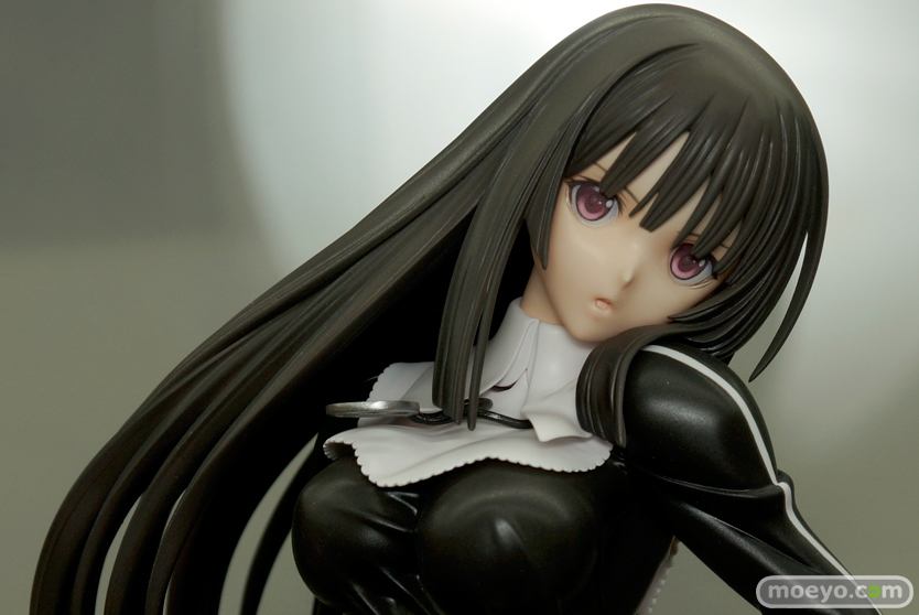流れるような長く美しい黒髪と、風を孕んでひるがえる黒衣、凛々しい表情で前を見据える躍動的なイラストを基に右藏氏が渾身の立体化。