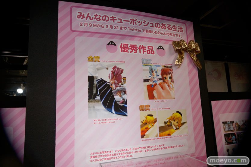 Twitterで募集されていた「みんなのキューポッシュのある生活(フォトコンテスト)」の優秀作品を含めた、作品の写真の展示や、キューポッシュ開発秘話などがかかれたPOPが掲示。