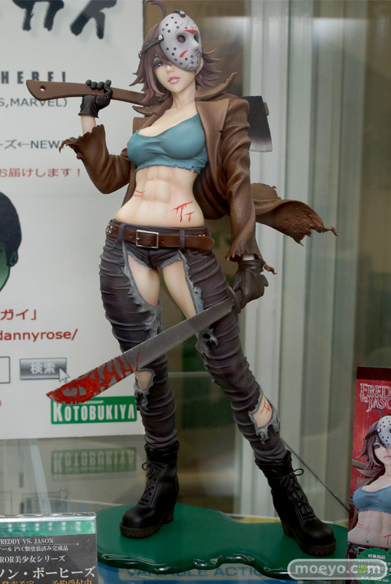 ■ 商品名:「HORROR美少女 フレディVSジェイソン ジェイソン・ボーヒーズ」 ■ 発売元:コトブキヤ ■ 仕様:PVC塗装済完成品 ■ サイズ:1/7スケール 全高約230mm ■ 原型制作:毒島孝牧(ブスジマックス) ■ 価格:税込8,100円 ■ 発売:2014年10月 |