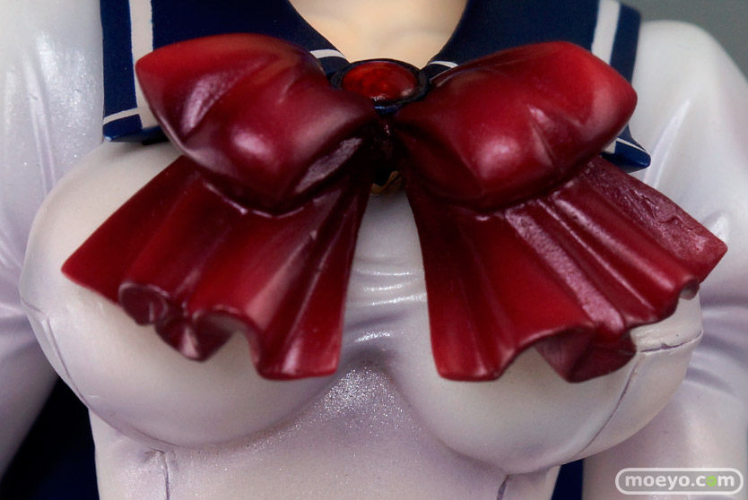 セーラーカラーと赤いリボン、クリアなフリルが特徴的なレオタード調コスチューム。透け塗装と相まってかなりのセクシーさです!