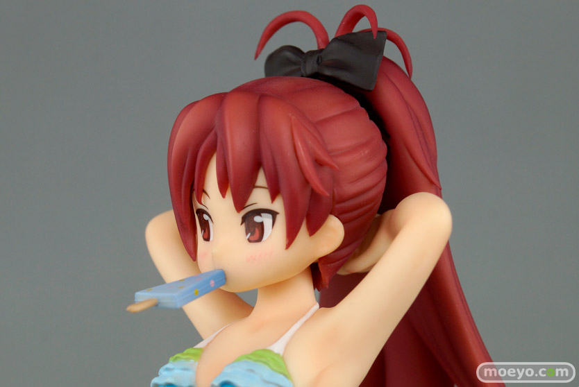 少女たち5人勢揃いで描きおろされた水着イラストを基に、フリルがフリフリ可愛らしい水着姿で、杏子らしくアイスを食べながらもどこか照れくさそうにフィギュア化いたしました。