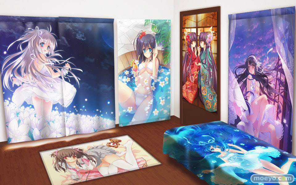 今回発売されるグッズは「カーテン&タッセル」2 種、「のれん」1 種、「カーペット」1 種、「ベッドシーツ」1種、「シャワーカーテン」1 種の計6 点です。