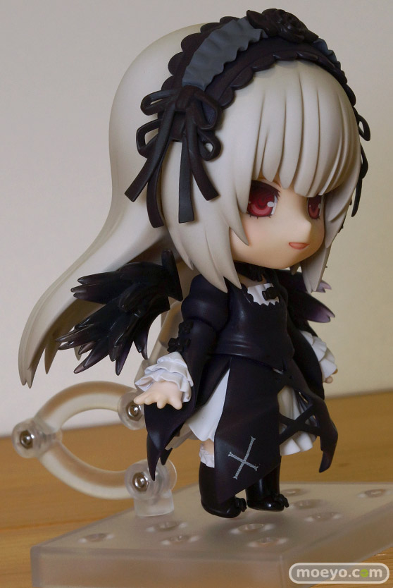 グッドスマイルカンパニーの新作フィギュア「ねんどろいど ローゼンメイデン 水銀燈」が2014年11月発売予定で予約受付中!「嘲笑顔」「舌打ち顔」「ジト目顔」の3つの表情パーツに、多数の差し替え用パーツ、水銀燈の象徴でもある大小の「羽パーツ」も付属!また、別売りの「ねんどろいど 真紅」とあわせれば、喧嘩シーンも再現可能となっています。その最新の彩色サンプルを見せて頂けましたので、画像レビューとしてお伝えします!