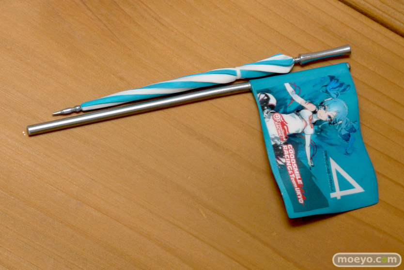 「レーシングミク 2014 ver.」は、さらにレースクイーンのパラソルや応援フラッグなどのアクセサリーも付属します。