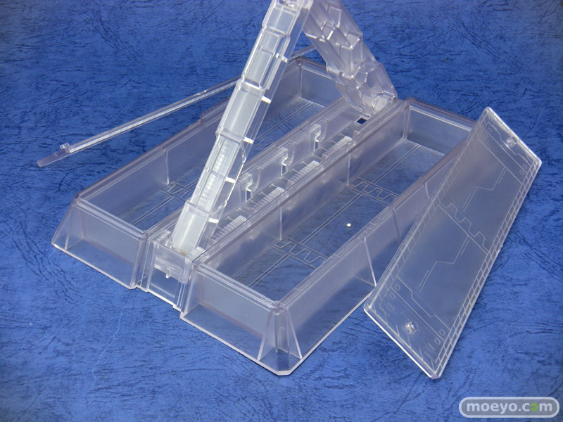アルカディアで展開している完全変形マクロスアイテムをディスプレイ可能な商品をリリースいたします。簡単に組み立てが可能で、すぐに使用できます。主柱先は角度調整可能。台座にある5か所のストッパーを使えば多少の高さ調整も出来ます。さらに台座部分には細かいパーツを収納できるスペースを確保しました。