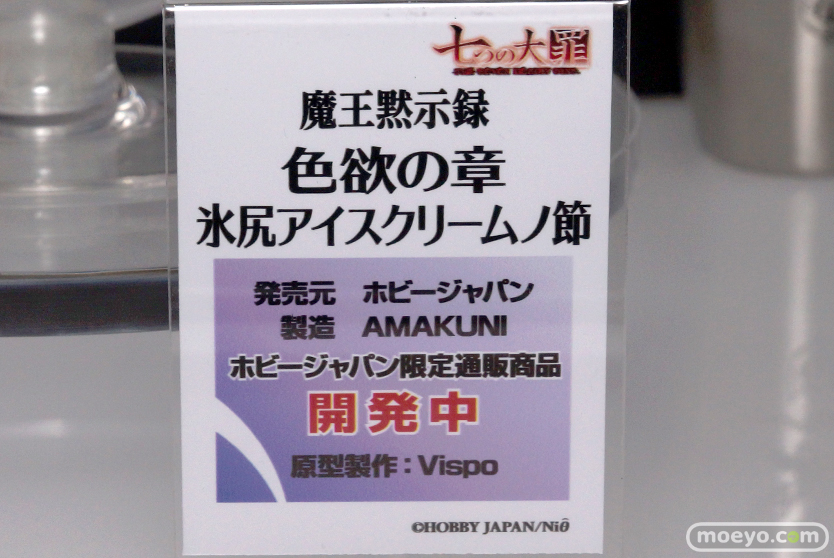【メガホビ2014秋】ホビージャパン「七つの大罪 魔王黙示録 色欲の章 氷尻アイスクリームノ節」 新作フィギュア製作途中原型画像レビューホビージャパンの新作フィギュア「七つの大罪 魔王黙示録 色欲の章 氷尻アイスクリームノ節」の製作途中原型が、11月29日に開催された「メガホビEXPO2014 Autumn」の会場で公開!アイスカップの中でデンジャー中たちの棒アイスを手にご満悦そうなお姿を立体化しています!名前の通りお尻も魅力的!その展示の様子を画像レビューとしてお伝えします!