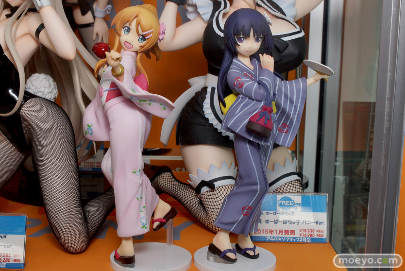 フリーイング「俺の妹がこんなに可愛いわけがない。 高坂桐乃 浴衣Ver.」 新作フィギュア彩色サンプル画像レビューフリーイングの新作フィギュア「俺の妹がこんなに可愛いわけがない。 高坂桐乃 浴衣Ver.」の彩色サンプルが、アキバ☆ソフマップ2号店で展示!『普段とはまた違う魅力あふれる淡いピンクの浴衣姿は可愛さ満点。』というもので、こちらも黒猫(画像レビュー)同様、原型制作はあます氏(林檎連盟)です。その展示の様子を画像レビューとしてお伝えします!