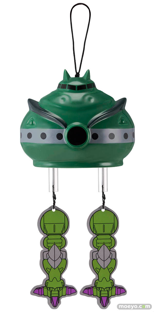 そしてA賞には、「ザク」の頭をキャップにした、冷茶ポットが登場。B賞では、「ジオン軍」の試作型モビルアーマー「ビグ・ザム」を、C賞では「シャア専用ザク」、「グフ」、「ドム」をデザインした風鈴がラインナップ。その他、水陸両用MS「ズゴック」、「アッガイ」、「ゴッグ」の氷が作れる楽しさ満点のアイストレーや、MSをモチーフにした箸や納涼グラスを取り揃えました。さらにラストワン賞では、「アッガイ」のそうめん鉢セットが登場します。