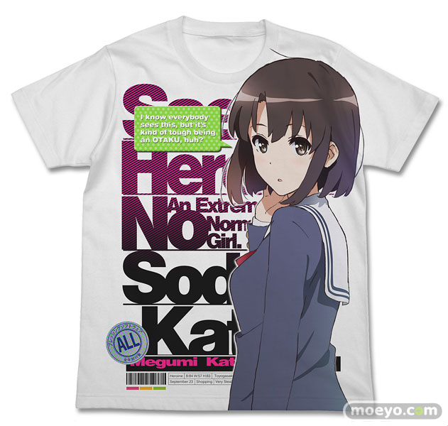 ■ 商品名:「冴えない彼女の育てかた 加藤恵 フルグラフィックTシャツ」 ■ 発売元:コスパ ■ サイズ:サイズ:S/M/L/XL ■ カラー:ホワイト ■ 価格:税込6,480円 ■ 発売:2015年6月下旬(※2015年5月下旬:ノイタミナショップにて先行販売予定です。) |