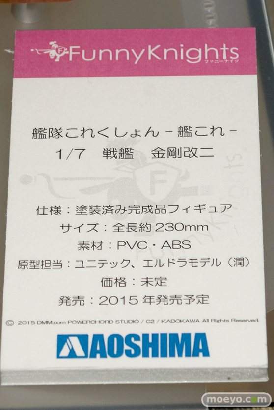 アオシマのブランド「ファニーナイツ」の新作フィギュア「艦隊これくしょん-艦これ- 戦艦 金剛改二」の無彩色サンプルが、4月17日に開催された「カフェレオキャラクターコンベンション2015春」で展示!本体のクオリティもさることながら、砲塔など一部可動可能な艦装のクオリティのも注目です!その展示の様子を画像レビューとしてお伝えします!