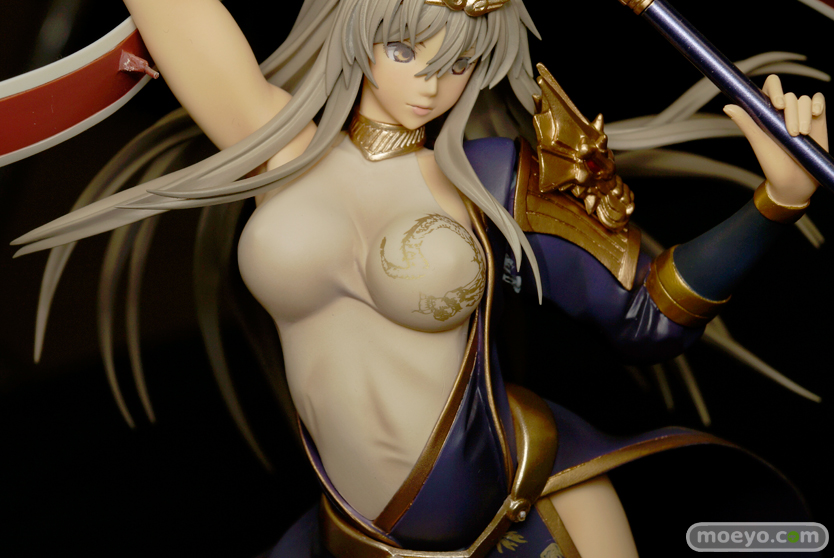 武将SRカード「関羽(女)」のイラストを元に、抜群のプロポーションや、凛々しい表情、関羽の武器である「青龍偃月刀」など細部にわたって再現しつつ、独自の造形に仕上げました。