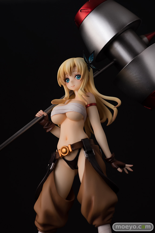 テレビアニメ第1期「僕は友達が少ない」第5話の劇中ゲーム「ロマンシング佐賀14」で登場する星奈の鍛冶屋コスが登場! サラシにTバックショーツ、ニッカポッカという独特すぎるコスには謎の魅力が。そして肩越しにかついだ巨大なハンマーが大迫力の作品です。