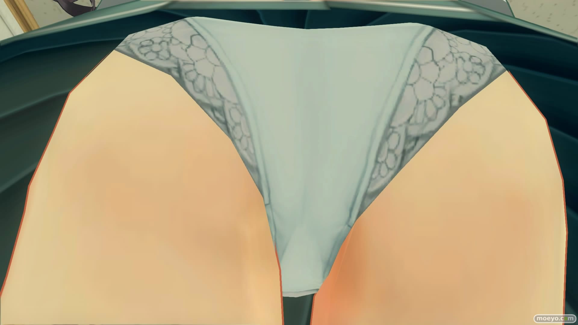 ゲーム本編ではおパンツショットを撮ろうとしてもせいぜいこのくらいか、もう少しよるのがやっとなのですが・・・。