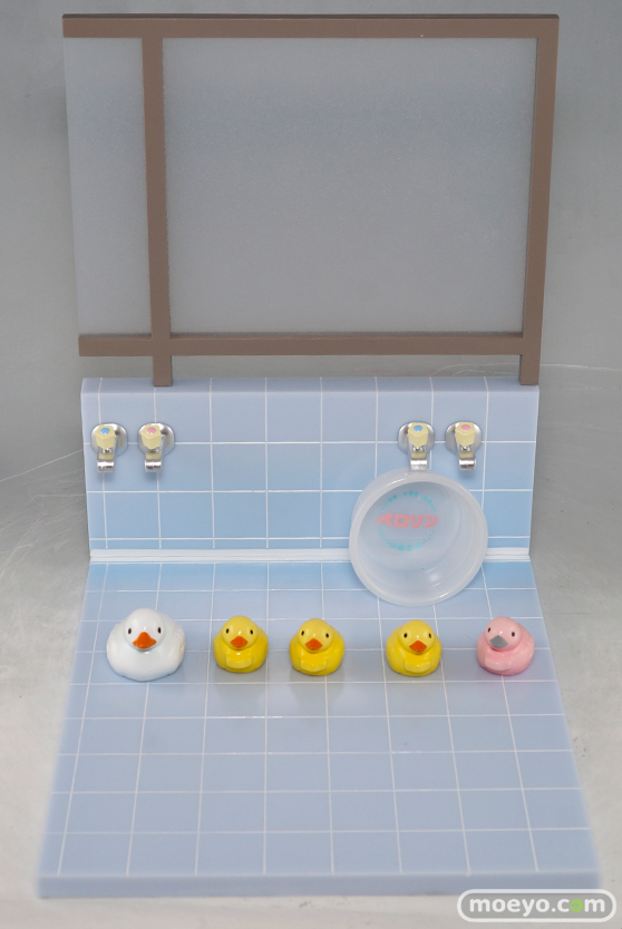専用ベースも爽やかな水色のカラーリングになり、風呂桶やアヒルのおもちゃなどの小物類も彩色が変更されています!