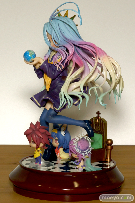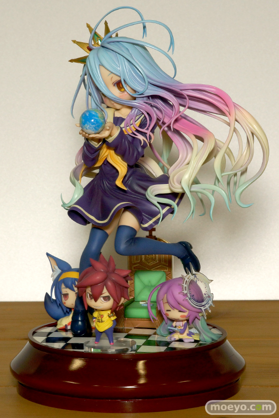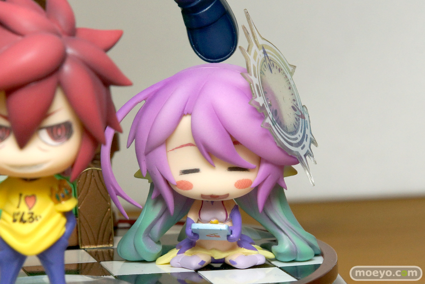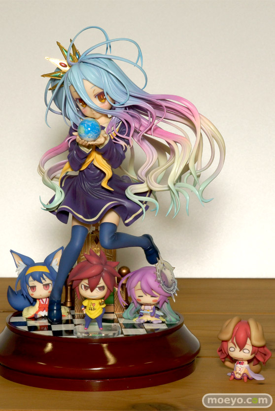 チェス盤を模した台座には人類種の玉座も。さらにデフォルメされた空、いづな、ジブリール、ステフも付属します!
