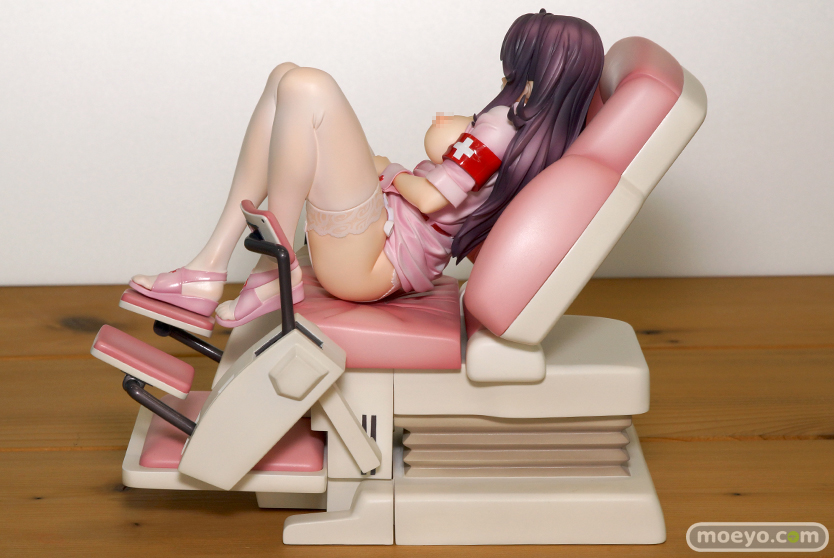 待望のsaitom氏描き下ろしイラストを立体化!神聖なる分娩台の上で物憂げな表情を浮かべながら、大きく開かれた胸元と四肢で誘惑する看護師・桃井。