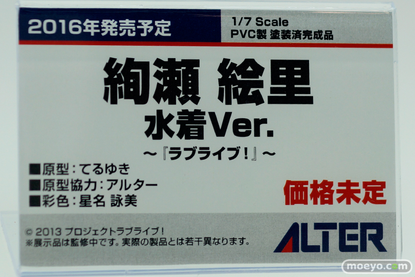 【WF2015夏】「絢瀬絵里」「矢澤にこ」「弓弦葉」「黒咲芽亜」など アルターブース特集7月26日に開催された「ワンダーフェスティバル 2015[夏]」アルターブースでは、画像の「ラブライブ! 絢瀬絵里 水着Ver.」や「ラブライブ!スクールアイドルフェスティバル 矢澤にこ」「朧村正 弓弦葉」「ToLoveる -とらぶる- ダークネス 黒咲芽亜」「甘城ブリリアントパーク 千斗いすず」などの新作フィギュアサンプルが展示!その様子を画像レビューとしてお伝えします!