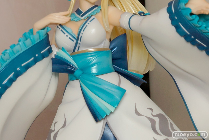 風になびく髪や袖、ふくらむスカートが、青を基調とした衣装と相まって、爽やかな印象のフィギュアとなっています。