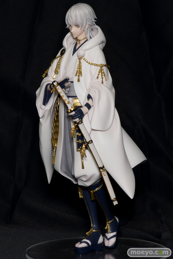 大人気PCブラウザゲーム『刀剣乱舞-ONLINE-』より、「鶴丸国永」が1/8スケールで登場。立ち姿を忠実に再現いたしました。繊細な立ち姿や細かな鎖の造形、鶴の名を表すような白い着物には何層にも重ねたハイライトやシャドウなど、フィギュアならではの魅力をおたのしみいただけます。審神者(さにわ)の皆様のお手元に、是非おむかえください。