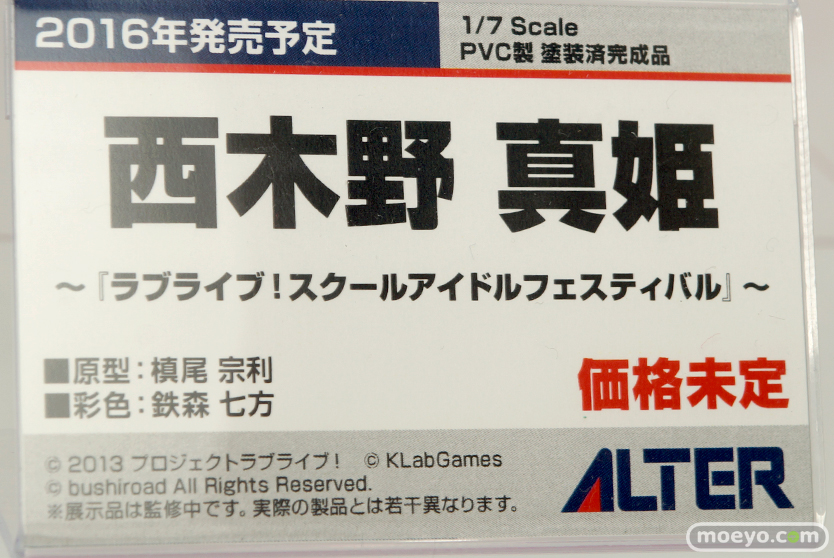 アルター新作フィギュア「ラブライブ!スクールアイドルフェスティバル 西木野真姫」の彩色サンプル【メガホビ2015秋】アルターの新作フィギュア「ラブライブ!スクールアイドルフェスティバル 西木野真姫」が、「メガホビEXPO 2015 Autumn」の会場で展示!唇に指をあてた内緒♪なポーズでの立体化で、原型制作は慎尾宗利さん。彩色は鉄森七方さん。その展示の様子を画像レビューとしてお伝えします!