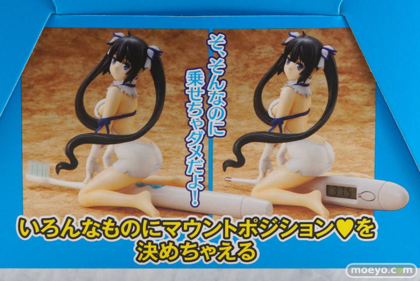 主人公ベル君の能力を計る際の“例のマウントポーズ”で立体化。このポーズだと丈の短い上着から絶対見えちゃう乙女の秘密はしっかりと枕でガードされているけれど、もちろん取り外しが可能!というか乗っかっているだけ!!ということはですよ、枕を外して違うものに乗せれば・・・そう!今回の開発コンセプトは≪いろんなものにマウントポジションを決められちゃうフィギュア≫なのです。その名も『マウントフィギュア』!