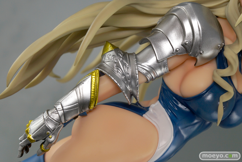 硬質な金属感を感じさせる甲冑部分と柔らかな肌の対比に、紺水着のコントラストが入ることでより肌部分が生々しく感じられます。