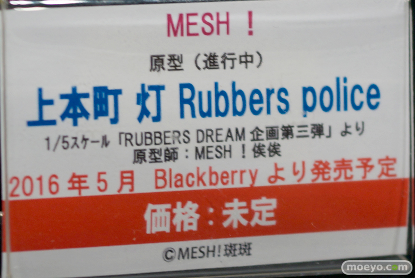 おそらくですがDRAGON Toyは今回申請忘れのため、6-19-08(MESH!ブース)での展示となっており、たぶん上記「上本町灯 Rubbers police」の原型師さんのブースだったため、併せての展示になっていたのかと思います。