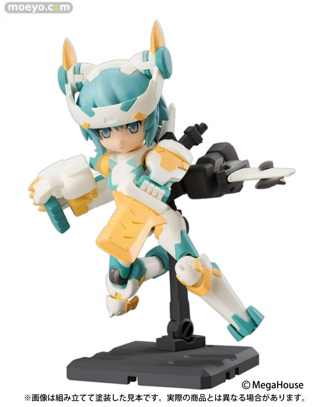 首や肩、股関節の他に肘と膝も可動。さらに、差し替えの延長関節パーツを使用すると、可動フィギュアでは難しいといわれている女の子らしい“ペタンコ座り”も再現可能。開発中の第2弾の各武装パーツも全て共通規格となっているので、集めれば集めるほど遊びの幅が広がる可動フイギュアシリーズとなっています。
