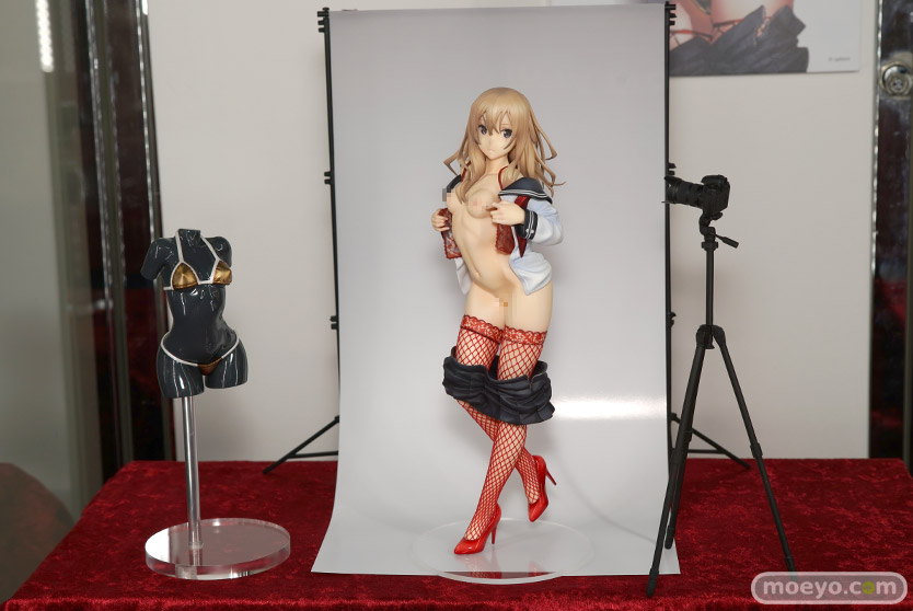真剣な眼差しで撮影に臨む夏海の姿を、まさに写真のように切り出したフィギュアです。saitom氏の描くしなやかなボディラインと白い肌、長く綺麗な脚に映える赤のストッキング、