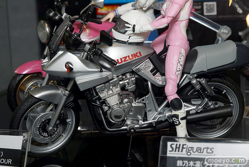 バンダイ新作フィギュア「S.H.フィギュアーツ 鈴乃木凜&GSX 400S KATANA/佐倉羽音&CB400 SUPER FOUR. 『ばくおん!』」のサンプルが展示!【アニメジャパン2016】