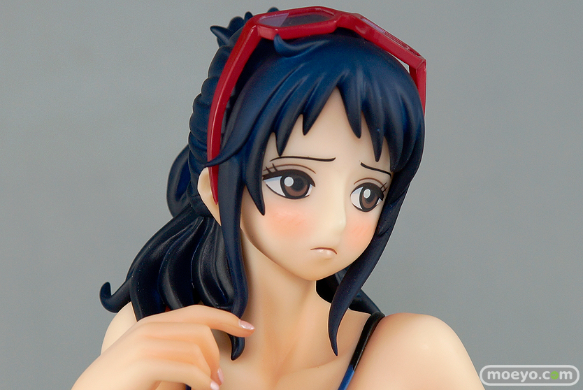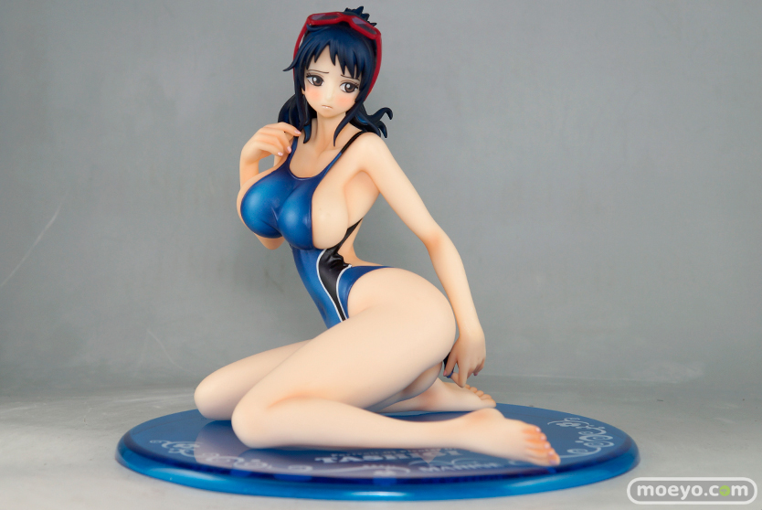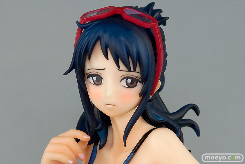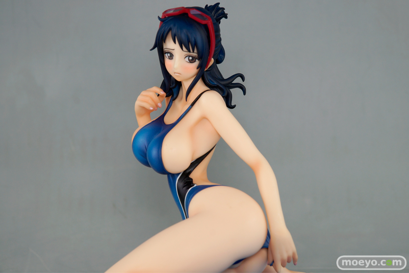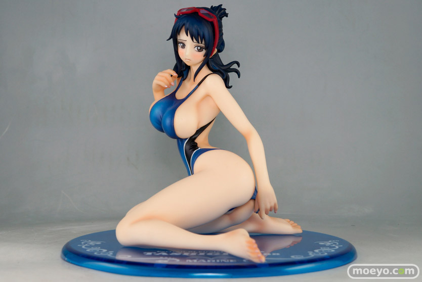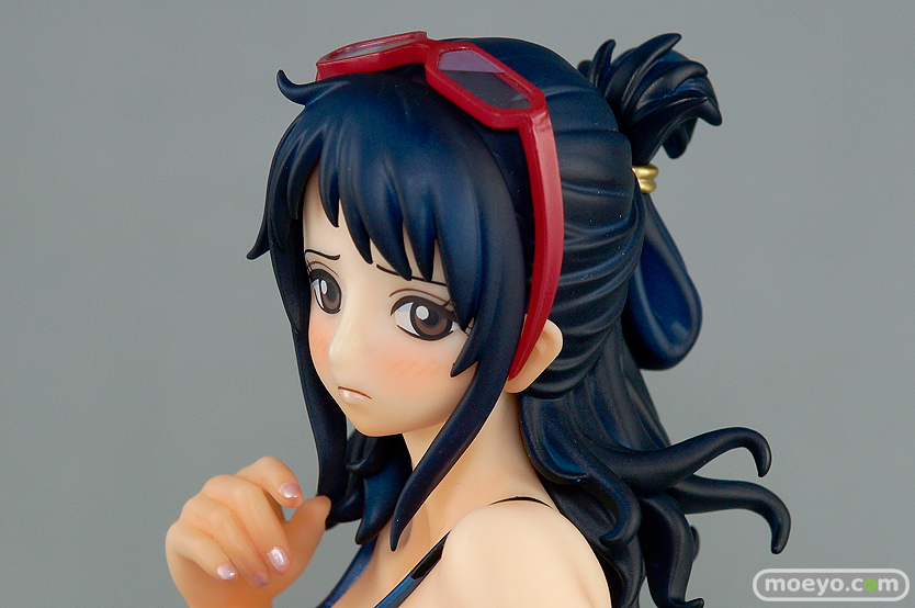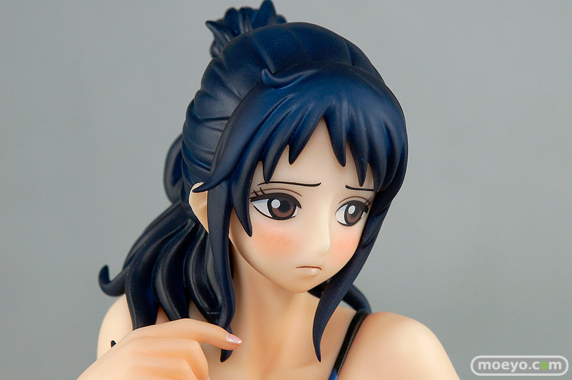 少尉から大佐へ心身共に大きく成長を遂げつつも、生真面目な性格らしく二年前の水着を身に纏ったたしぎの姿を、原型製作:稲田基樹(HEPTA)と彩色見本製作:たぅもけいのタッグが、はちきれんばかりの大胆な造形アプローチで魅力たっぷりに立体再現しています。