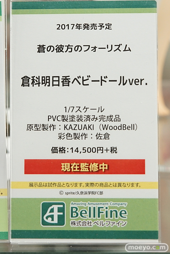 関連:ベルファインの新作フィギュア「蒼の彼方のフォーリズム 倉科明日香ベビードールver.」監修中彩色サンプルが展示!【C3 2016秋】