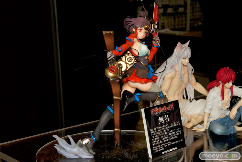 ユニオンクリエイティブの新作フィギュア「Hdge technical statue No.17 甲鉄城のカバネリ 無名 美樹本晴彦完全監修Ver.」の彩色サンプルが、「宮沢模型 第38回 商売繁盛セール」の会場で展示!『アニメ設定とはひと味違う、美樹本ワールドを完全監修により盛り込み、躍動感溢れる無名を立体化しました。』というもので、原型制作は株式会社 monolithさん。お尻は確実に丸出しなので、もしかしたらはいてない…のかも?そんなサンプル展示の様子を画像レビューとしてお伝えします。